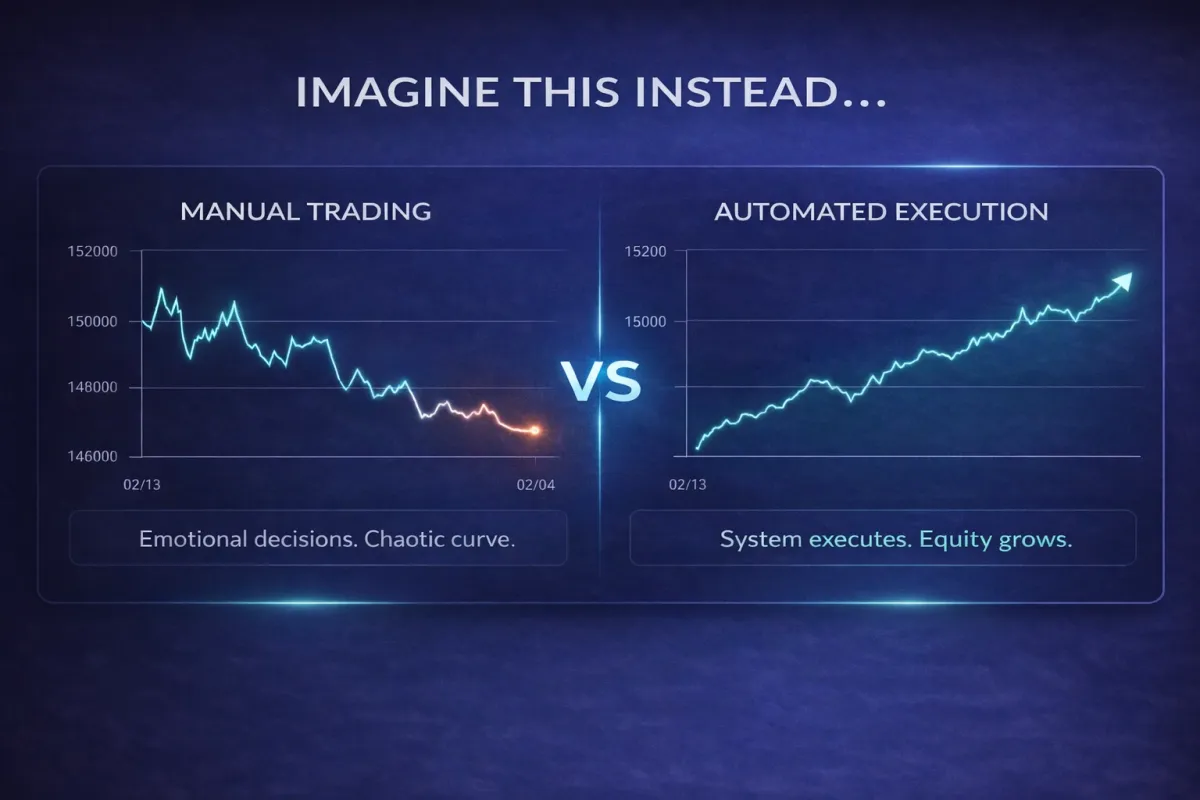 No more relying on discipline and willpower. Your trading rules become a system that follows them every single time. Emotion, impulse, and second-guessing stop costing you money.