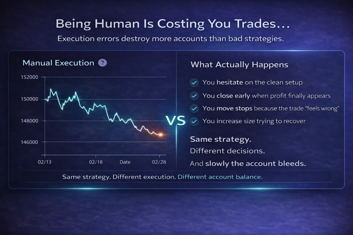 You didn’t get into trading to fight your own reactions. You got into it for control — for defined risk and rules that execute the same way every time. But when it’s time to act, emotion overrides the plan. You hesitate on clean setups, interfere with trades that were working, or increase size after a loss trying to make it back.